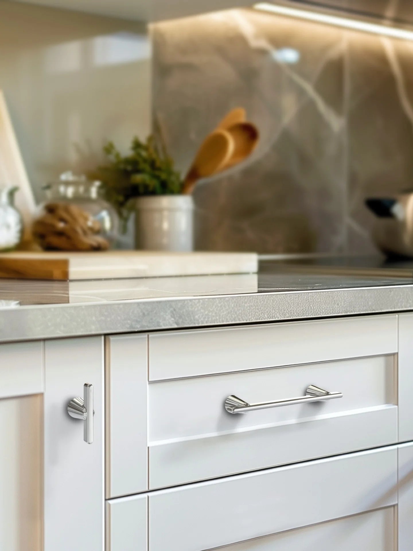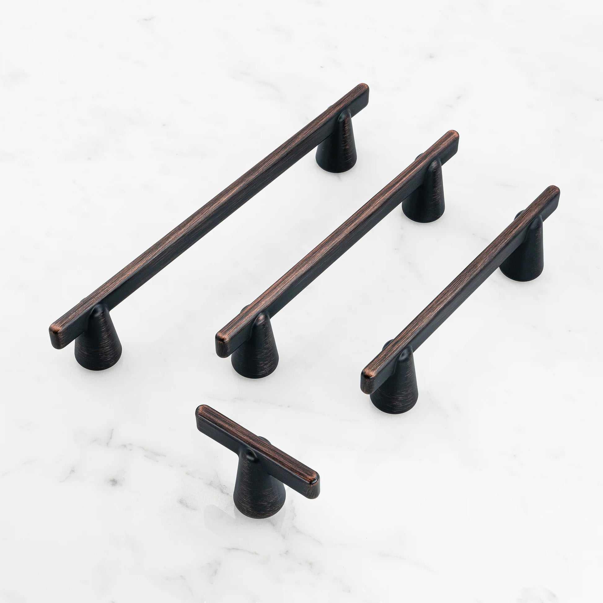 Presenting our latest New Modern cabinet pull collection, featuring a sophisticated cone-shaped bottom and a sleek T-bar design, ideal for enhancing any living space. The design's simplicity and elegance, coupled with tapered geometric forms, offer a timeless aesthetic for your cabinets.